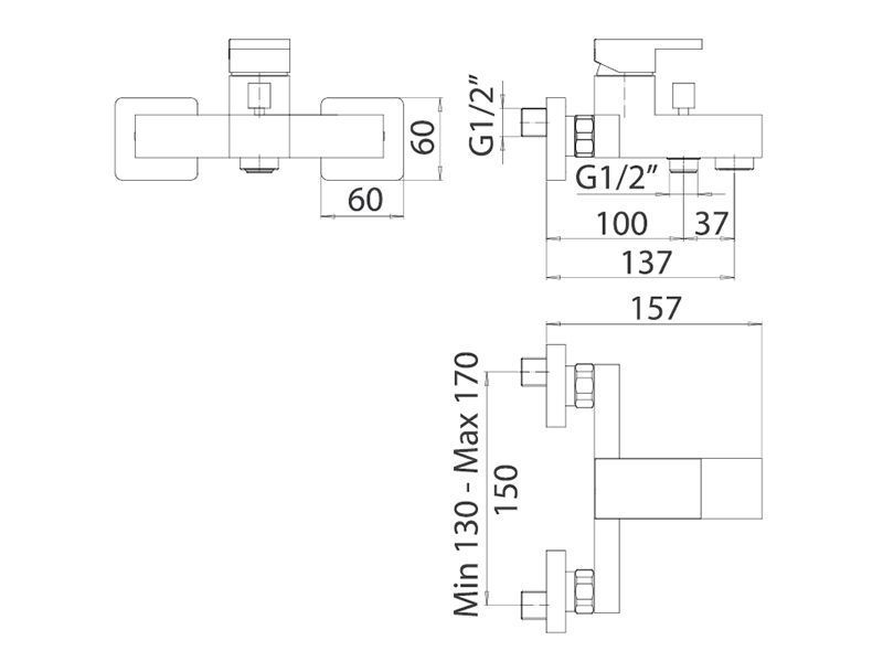 —Смеситель для ванны Mamoli Feel 1840PD40D221 настенный хром