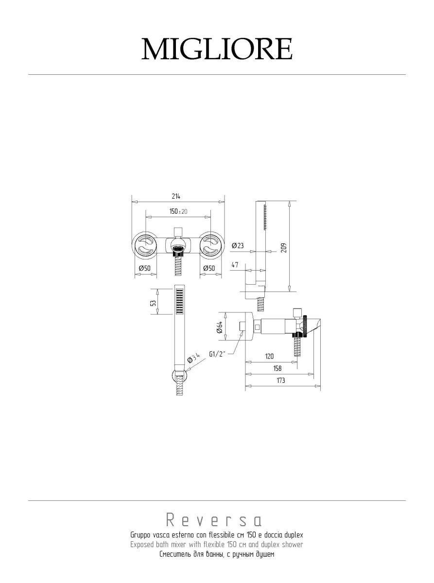 —Смеситель для ванны Migliore REVERSA 28211 настенный хром