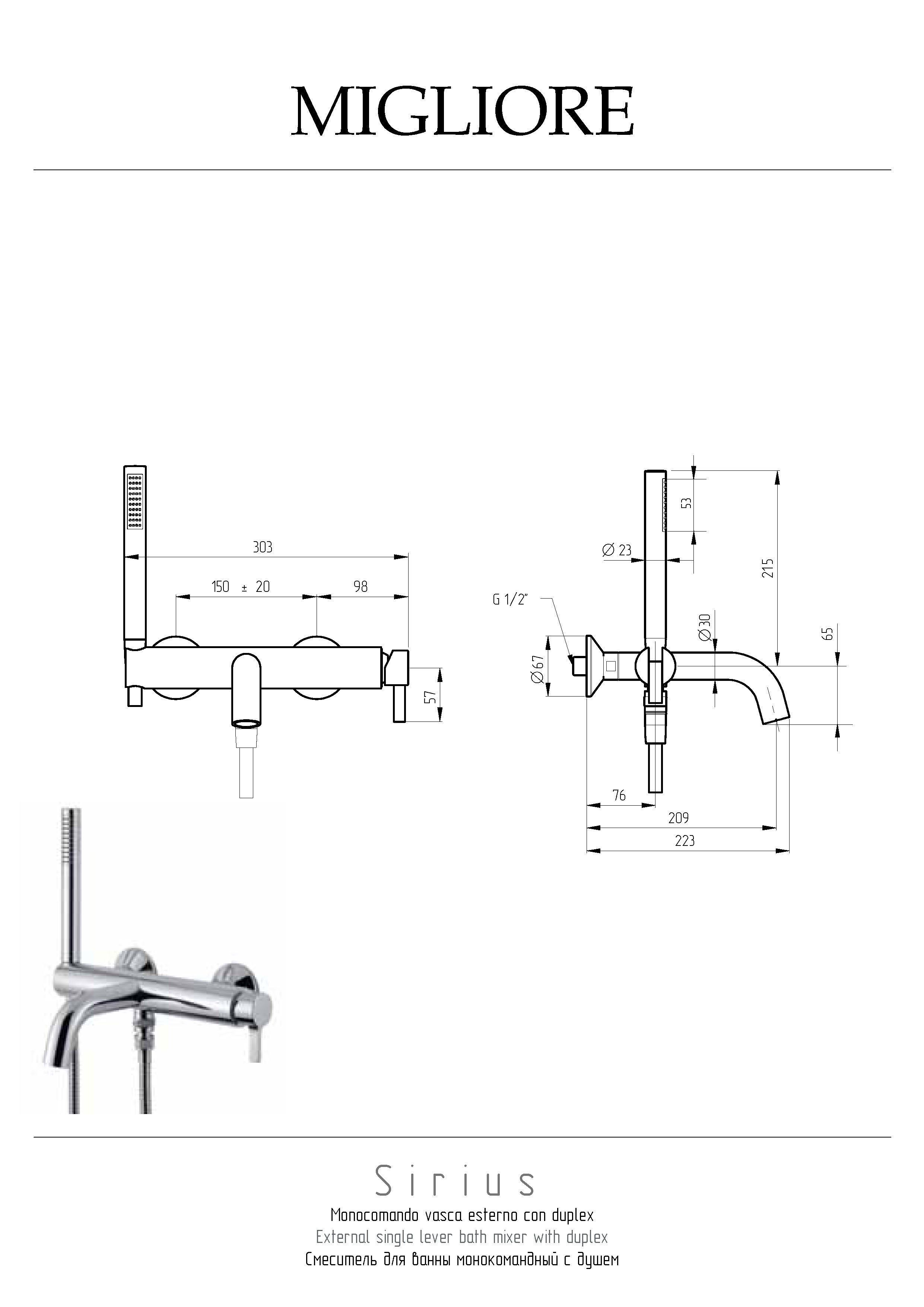 —Смеситель для ванны Migliore SIRIUS 28177 настенный хром