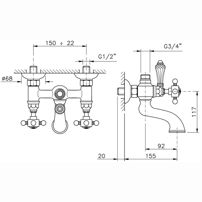 —Смеситель для ванны Nicolazzi Dames Anglaises 1400CR70 настенный хром