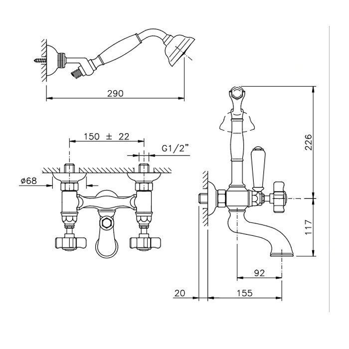 —Смеситель для ванны Nicolazzi Dames Anglaises 1402BZ18 настенный бронза