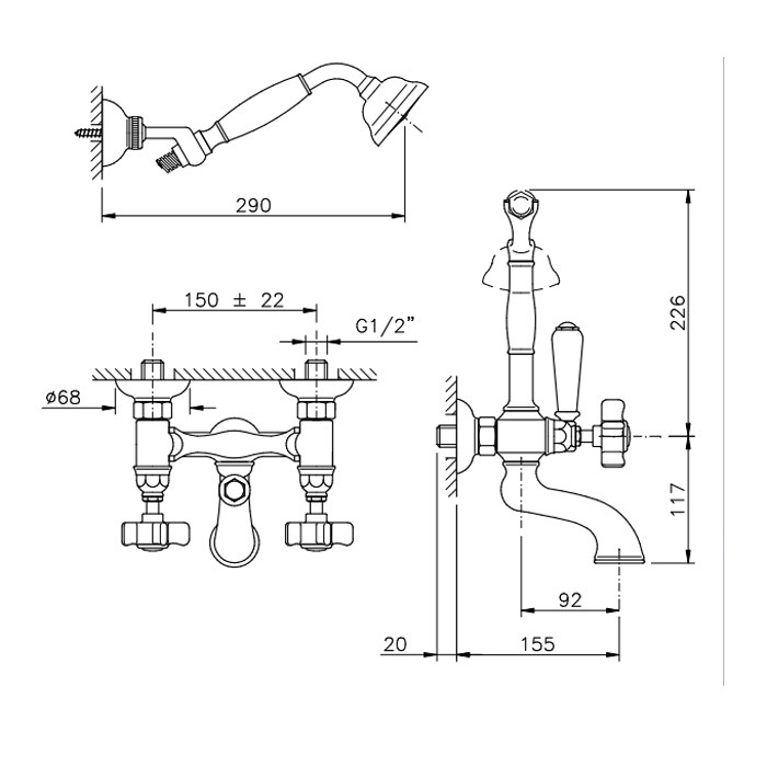 Смеситель для ванны Nicolazzi Dames Anglaises 1402CR18 настенный хром