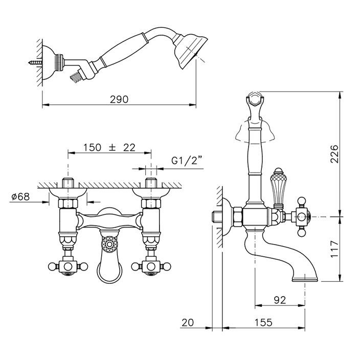 —Смеситель для ванны Nicolazzi Petit Mont Blanc 1402CR78 настенный хром