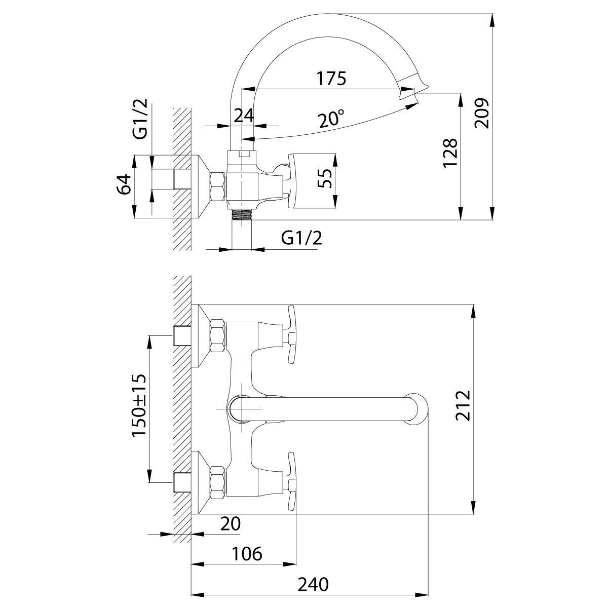 —Смеситель для ванны Rossinka RS40 RS40-83 настенный хром