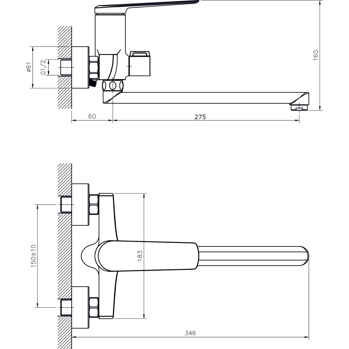 —Смеситель для ванны Rush Bering BE5535-51 настенный хром