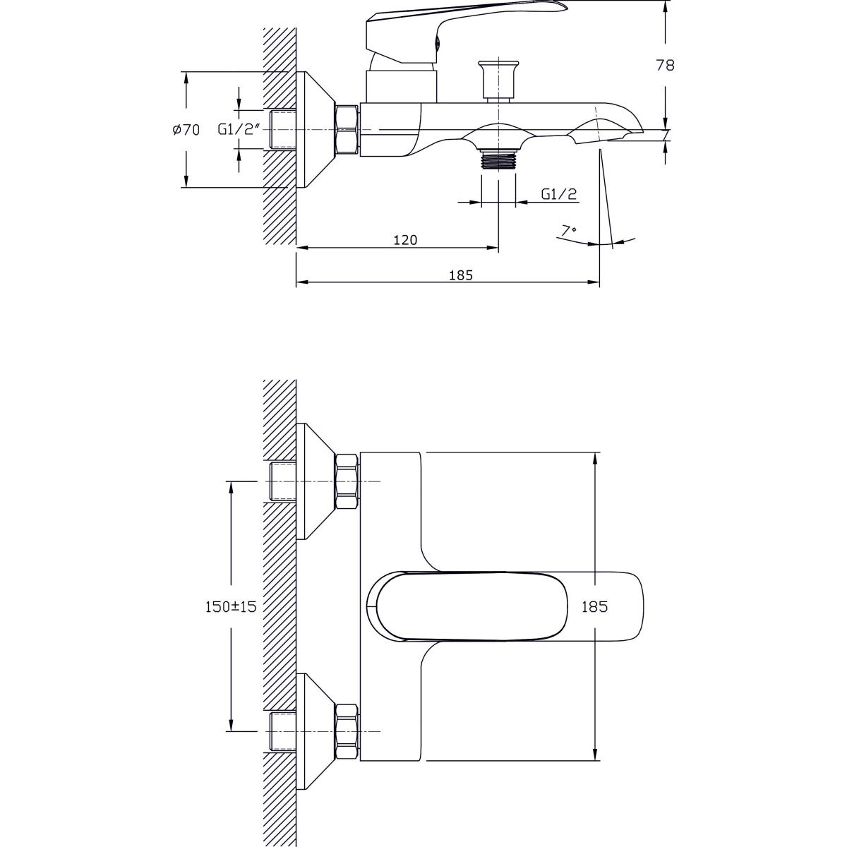 —Смеситель для ванны Rush Gozo GZ3735-44 настенный хром