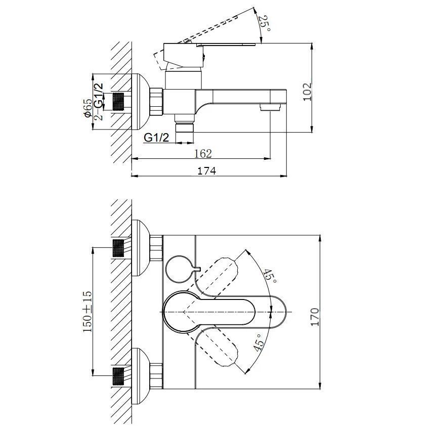 Смеситель для ванны Rush Tenerife TE2835-44 настенный хром