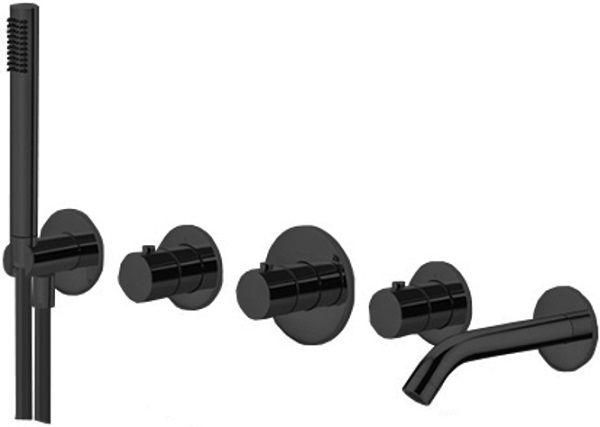 —Смеситель для ванны с душем Paffoni Modular Box MDE001NO настенный черный с термостатом