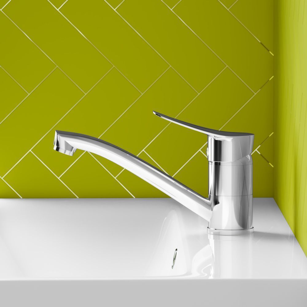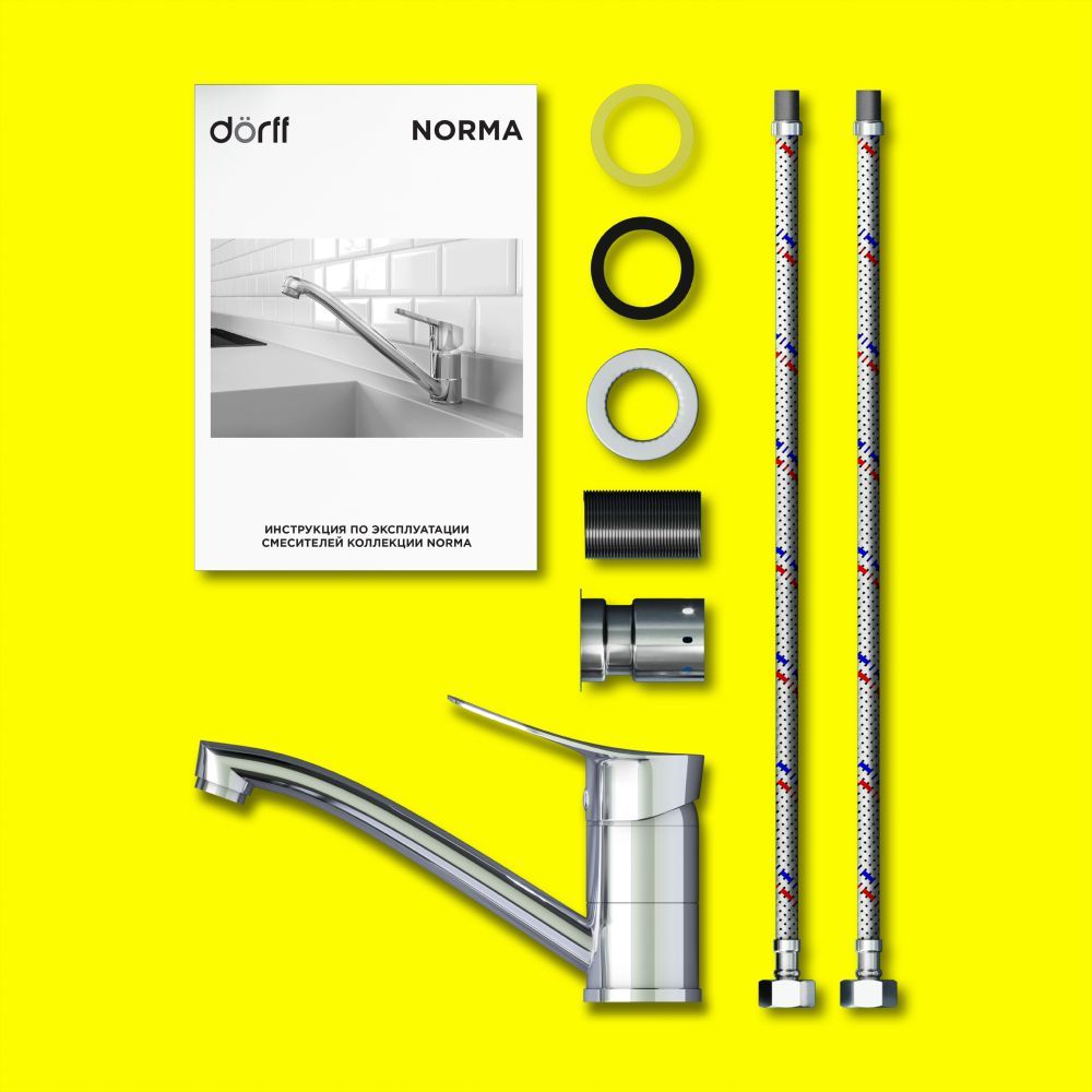 Хромированный однорычажный смеситель для раковины Norma с поворотным изливом отличается плавным и удобным поворотным ходом и классическим дизайном  что позволит ему стать украшением любой ванной комнаты.  А удлиненный излив обеспечит удобную подачу воды даже в раковинах большого размера. Стандарт подводки 1/2.