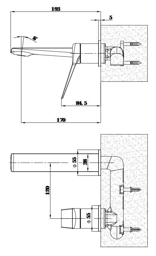 —Смеситель для раковины Esko SHA28Gold встраиваемый в стену золото