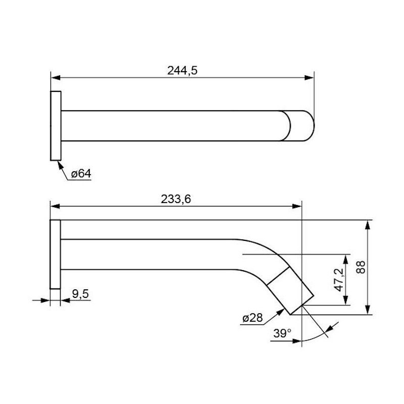 Длина излива, см