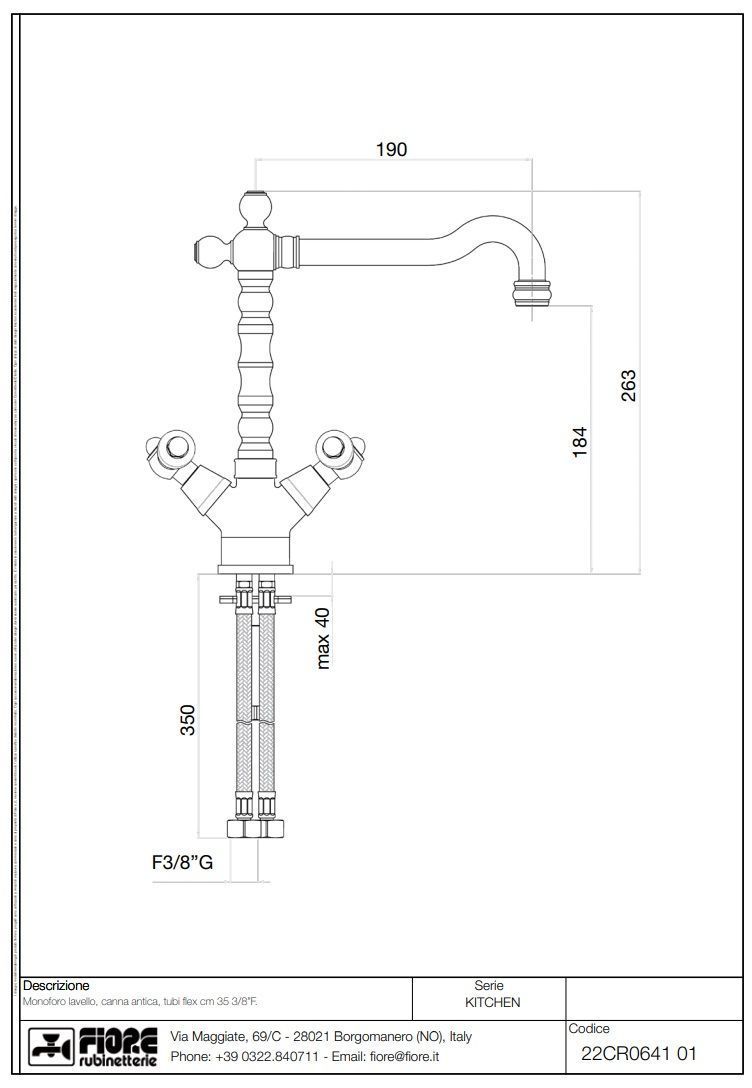 —Смеситель для кухни Fiore Coloniale Black 22CR0641 на мойку хром
