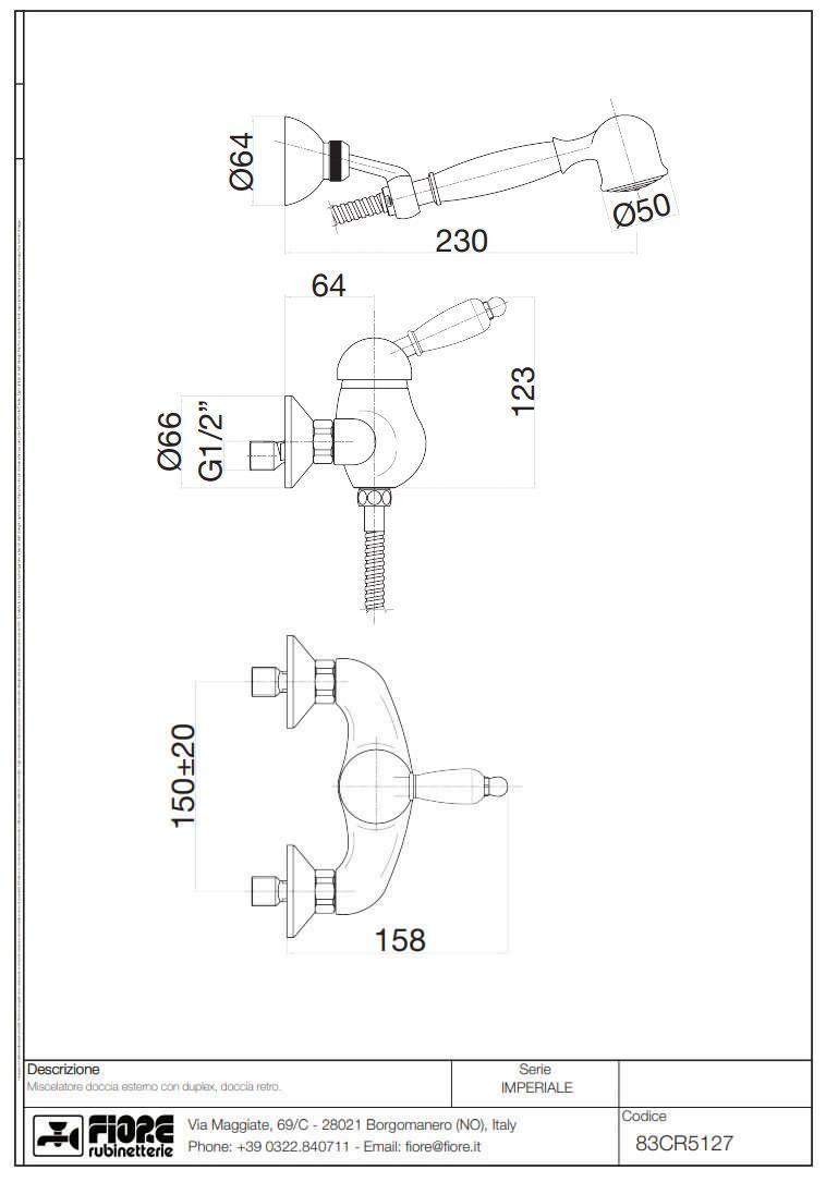 —Смеситель Fiore Imperiale 83OO5127 настенный золото