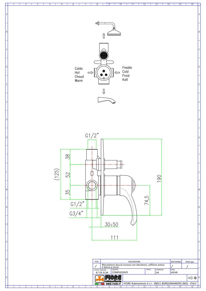 Смеситель Fiore Jafar 47CR5134 встраиваемый в стену хром