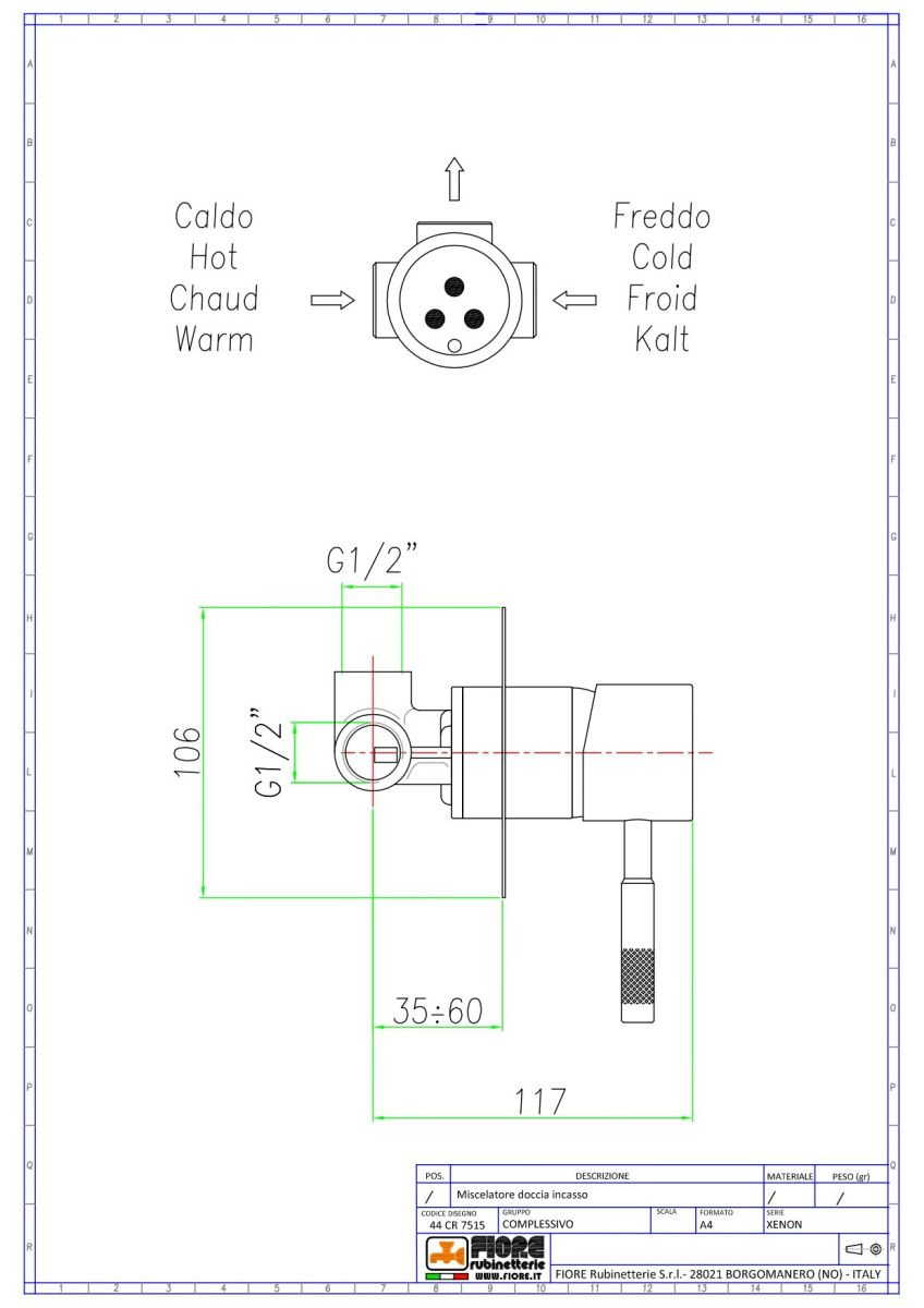 —Смеситель Fiore Xenon 44OO7515 встраиваемый в стену золото