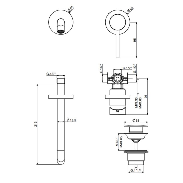 —Смеситель для раковины Gattoni CIRCLE TWO 9137/91SG встраиваемый в стену золото