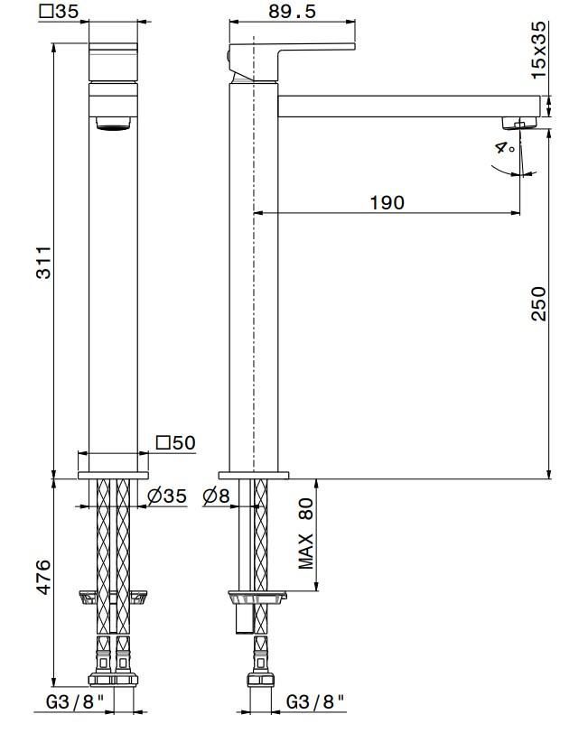 Высота излива, см