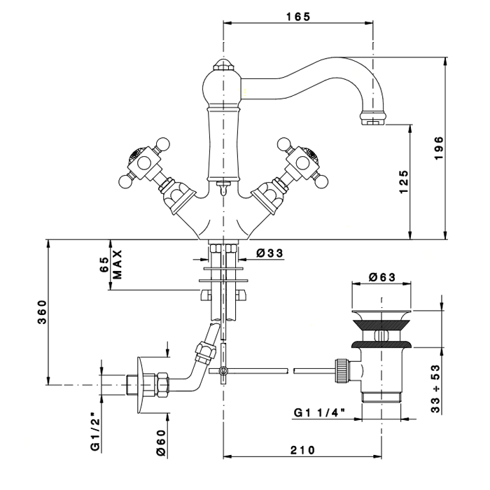 Смеситель Nicolazzi Dames Anglaises 1432CR70 на раковину хром