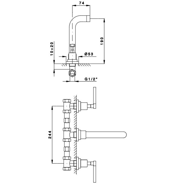 —Смеситель для раковины Nicolazzi Monte Croce 2207EXTCR29 встраиваемый в стену хром (внешняя часть)