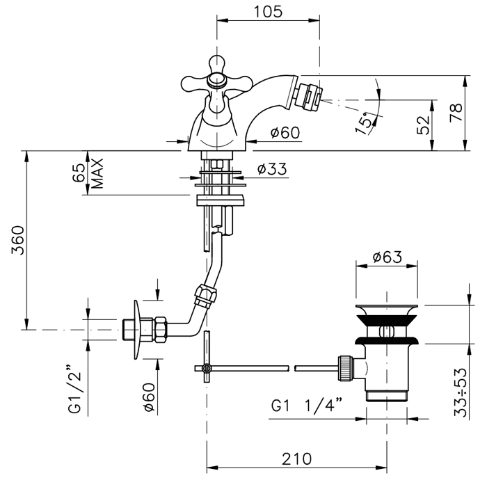 —Смеситель Nicolazzi Nuova Brenta 2534CR на биде хром
