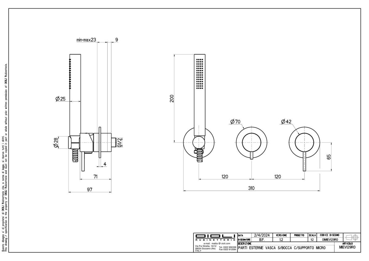 —Смеситель Oioli Micro MIEV129RO/C47 встраиваемый в стену золото