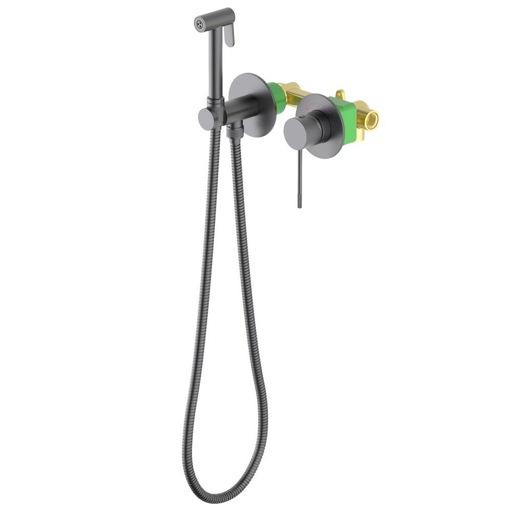 "Черное золото"- неизменно эффектный и привлекающий внимание цвет. Приглушенный мягкий оттенок черного, подчеркнет форму раковины или цвет мебели. Встраиваемый смеситель с гигиеническим душем Timo Saona 2339 предназначен для монтажа в твердой или полой стене. Термокартридж с защитой от ожогов ограничивает максимальную температуру воды 45 С° повышая комфортность и безопасность использования. Основной задачей данной модели является: экономия места (установка чаши для биде занимает достаточно много места и к тому же затратнее). Все коммуникации, крепления и механизмы спрятаны в стену и закрыты декоративными накладками, снаружи находится только рычаг управления смесителем и держатель гигиенической лейки с подключеним шланга, такая модель отлично сочетается с инсталляцией для унитаза. Длины шланга 1,2 метра хватает для решения гигиенических задач. Можно также использовать например, для мытья собаки после прогулки или наполнения ведра воды и т.д. Сложностей монтажа не возникает при установке смесителя опытным сантехником. Внимательно изучите инструкцию по монтажу и эксплуатации. Цвет "черное золото" не капризен в уходе, на нем менее заметны загрязнения и мелкие царапины.