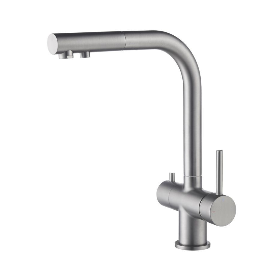 "Черное золото" - неизменно эффектный и привлекающий внимание цвет. Приглушенный мягкий оттенок черного, подчеркнет форму раковины.Смеситель Timo Saona 2356 с выдвижной лейкой и системой подключения фильтрованной воды относится к премиальному сегменту, предназначен для монтажа на кухонную мойку или столешницу. Высокий излив подходит для моек с двумя чашами, а также позволяет справляться с мытьем габаритной посуды. Удобное (вертикальное) расположение рычага смесителя в крайнем положении "холодный старт", позволяет не задевать ручкой за стеновые панели, фартук, предметы, которые находятся за смесителем. Картридж с функцией "холодный старт" работает в диапазоне 90 градусов, рычаг установленный в исходное положение (вертикально) при открытии подает только холодную воду, а не 50% холодной воды плюс 50% горячей, позволяя экономить до 30% расход горячей воды. Для подачи горячей воды необходимо повернуть рычаг на себя. Выдвижная лейка с прочным шлангом длинной 400мм облегчает мытье раковины, крупной посуды, позволяет набрать воду в емкость, стоящую рядом с мойкой. Встроенный магнитный держать позволяет легко вернуть лейку в исходное положение. В нижней части смесителя установлена трубка с адаптером для соединения с трубкой фильтра. Подача фильтрованной воды осуществляется поворотом ручки дивертора расположенной слева на корпусе смесителя. Сложностей монтажа не возникает при установке смесителя опытным сантехником. Внимательно изучите инструкцию по монтажу и эксплуатации.Цвет "черное золото" не капризен в уходе, на нем менее заметны загрязнения и мелкие царапины.