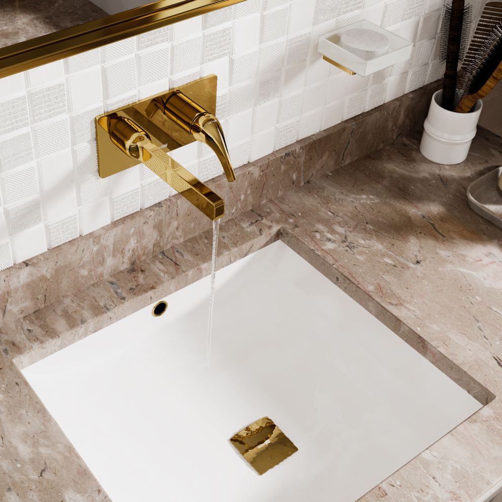 —Смеситель для раковины Wasserkraft Sauer 7100 7130 встраиваемый в стену золото