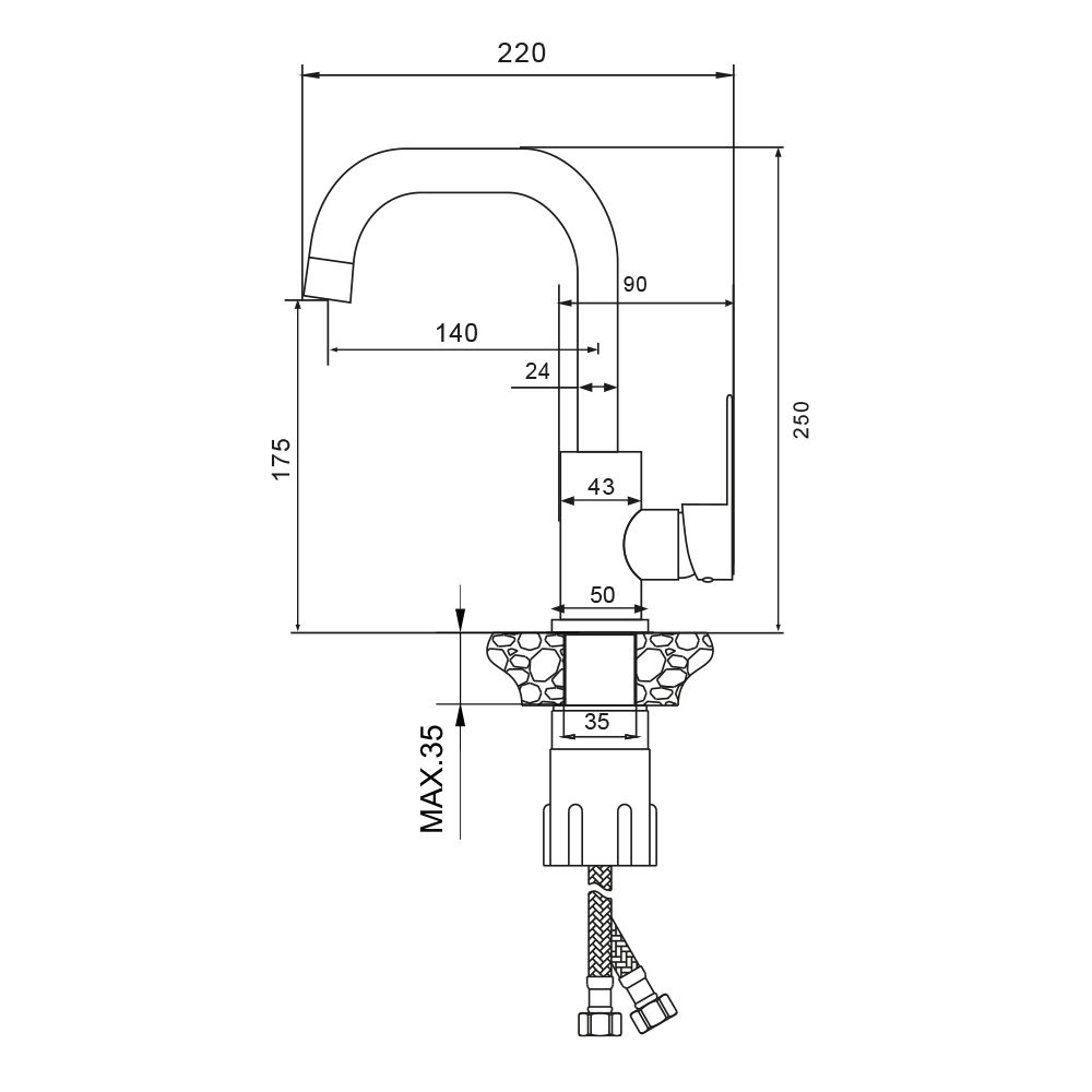 Смеситель изготовлен из нержавеющей стали SUS304. Данный материал отличается особой прочностью, износостойкостью и гигиеничностью. 0% Pb – нержавеющая сталь не содержит свинец, является экологически чистым материалом.