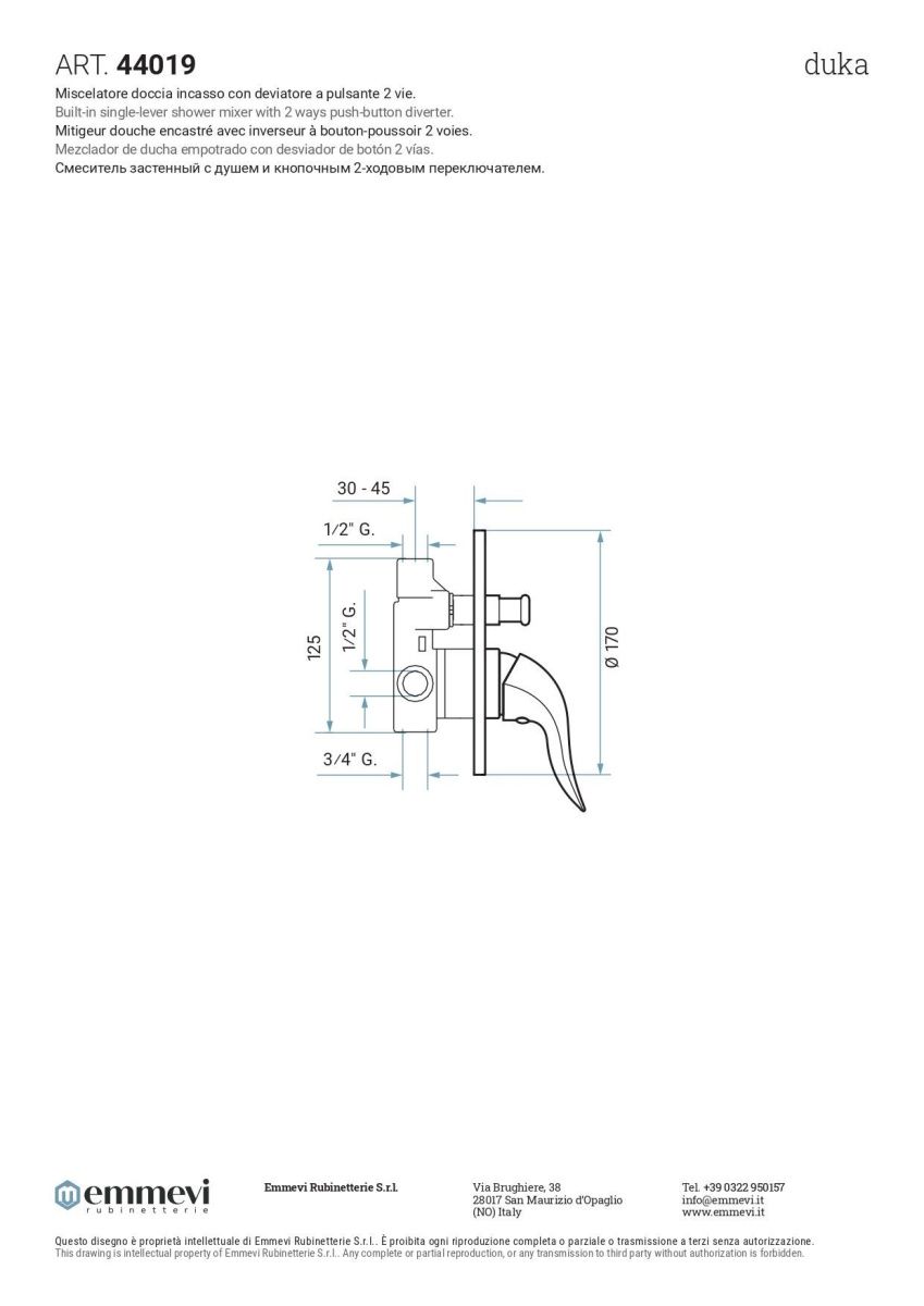 Смеситель Emmevi Duka 44019/BR встраиваемый в стену бронза