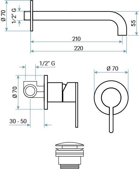 —Смеситель для раковины Emmevi Filoinox 85155/IN встраиваемый в стену никель