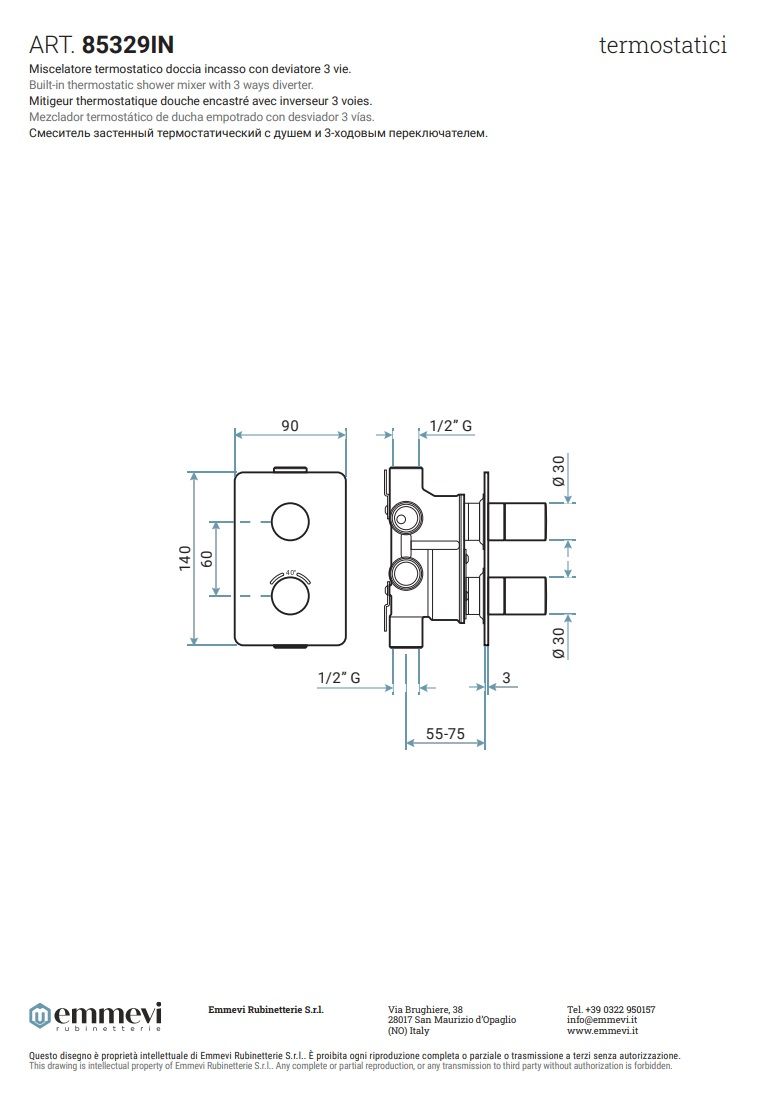 Смеситель Emmevi Filoinox 85329/IN встраиваемый в стену сталь