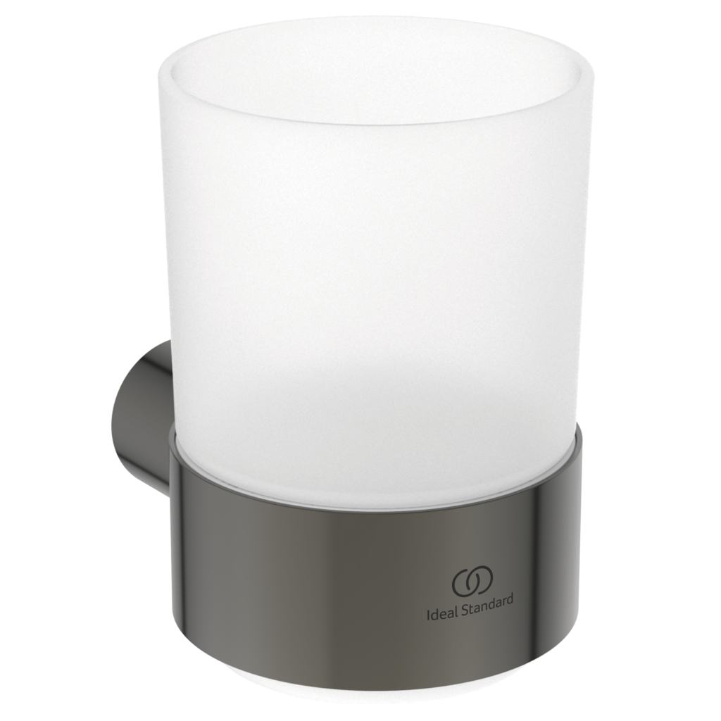 T4505A5 CONCA Стакан с держателем, настенный, матовое стекло, круглый, 68x95x97 мм, Magnetic Grey / Магнетический Серый