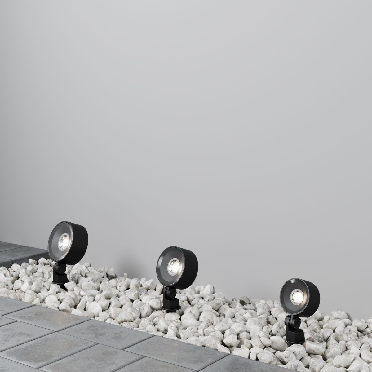 Материал арматуры - алюминий, цвет - черный. LED-источник света с цветовой температурой 3000К. Три размера с разной мощностью - 10, 18 и 25Вт. Повышенная степень защиты от пыли и влаги IP65. Поворотный механизм плафонов для регулировки направления светового потока.
