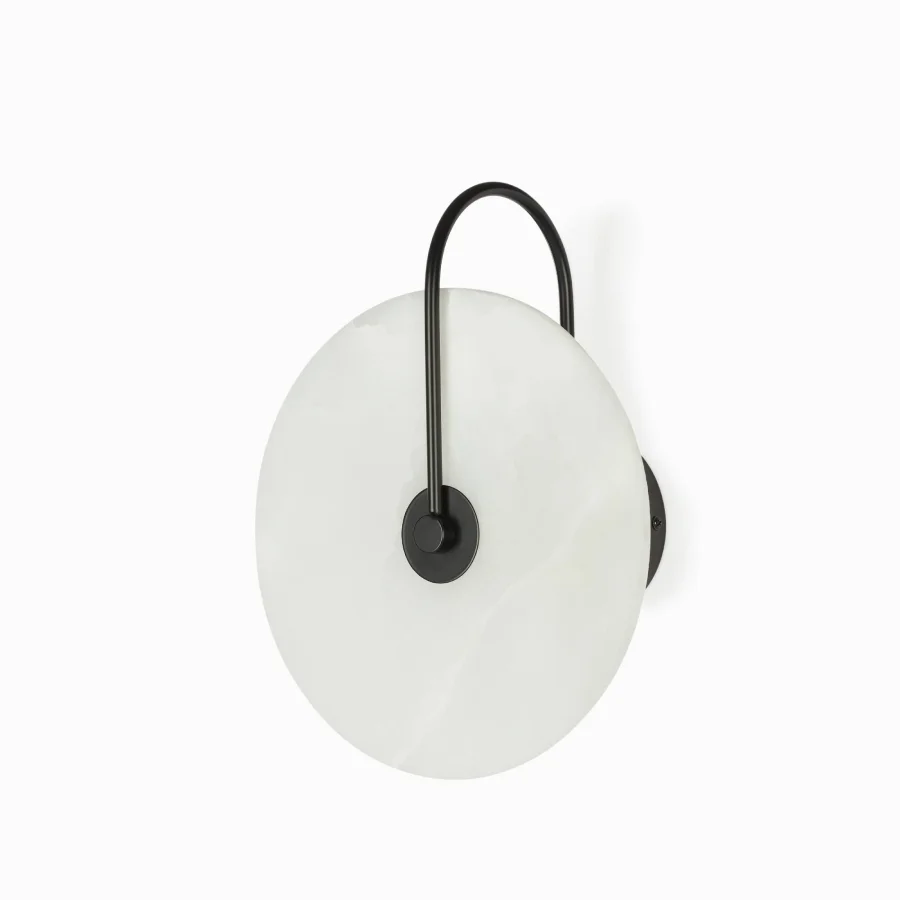 Черная металлическая арматура, тонкая и изящная, служит надежной опорой для этой невесомой красоты. Контраст между холодным мрамором и строгим металлом придает светильнику современное звучание, подчеркивая его лаконичный дизайн.
