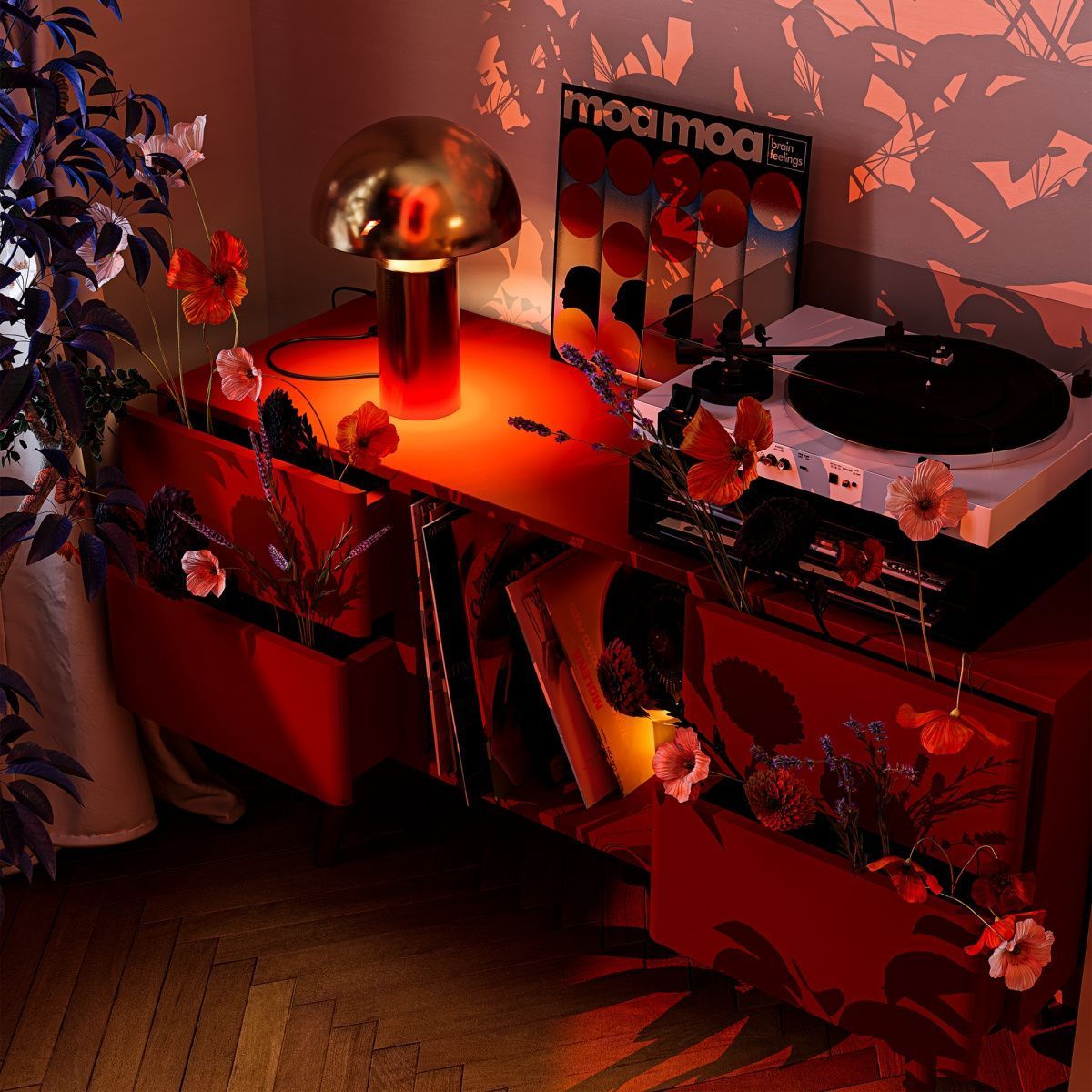 Материал арматуры — металл, цвет — латунь/черный/никель/кремовый. Цоколь E27 у подвесных светильников и E14 у настольных.  Регулируемая высота подвесных светильников. Особенность серии — окраска в актуальные оттенки, включая серо-бежевый (RAL 1019), что позволяет создавать гармоничные цветовые решения в современном интерьере.