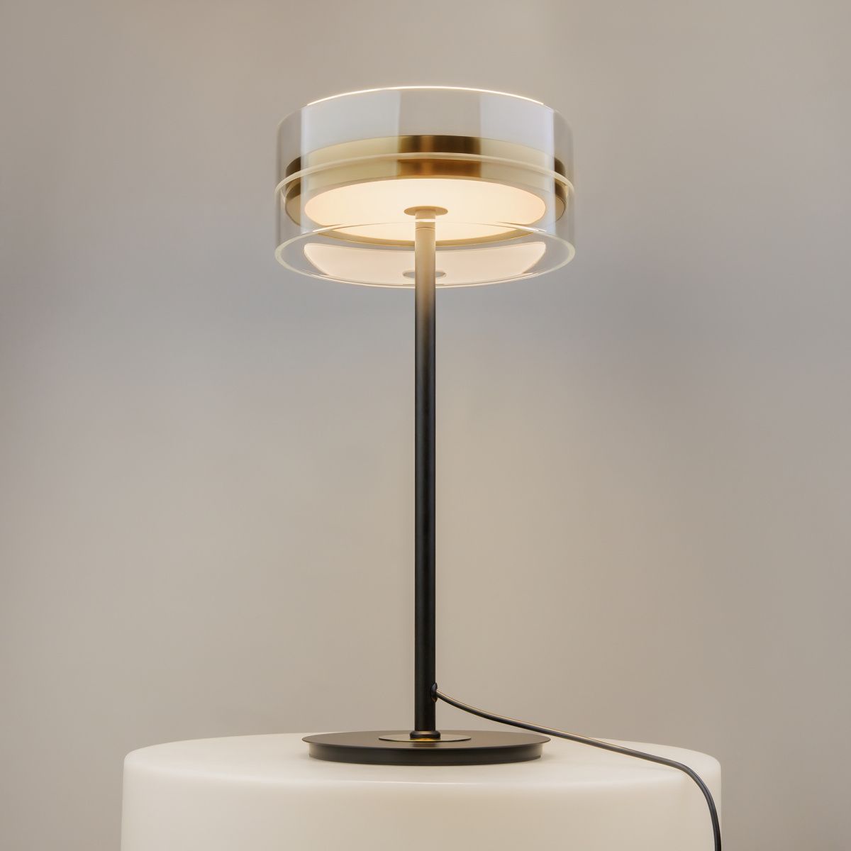 Плафоны подчеркнуто лаконичной формы в виде правильного цилиндра из стекла, дополненные металлической комбинированной черно-латунной арматурой. Источник света: LED. Цветовая температура — 3000К, угол рассеивания — 120 градусов. Провод длиной 3 метра можно регулировать. Светильники серии оснащены функцией диммирования: бесступенчатое управление у настольного светильника, а также 3 ступени регулировки - у торшера, подвесных и потолочного светильников. Светильники серии Dress code отличаются строгим и сдержанным дизайнерским оформлением.