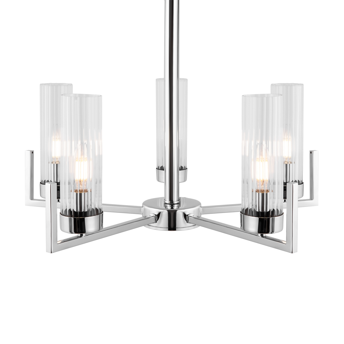 Дизайн на стыке классики и современности, выдержанная эстетика американского стиля в лаконичном исполнении. Adeline  – выбор тех, кто ценит традиции. Арматура из металла представлена в оттенках хрома и латуни. Её строгий силуэт подчеркнут минималистичными плафонами-цилиндрами. Граненое стекло с ребристым рисунком – актуальный тренд, создающий модный контраст фактур. Направленные вверх источники света равномерно распределяют световой поток по комнате и визуально приподнимают потолки. В серию входят люстры на 5, 8 ламп и бра – вы можете сформировать комплексный световой сценарий с общим и зональным освещением. Элегантный дизайн актуален для интерьеров в стиле неоклассика, ар-деко, модерн.