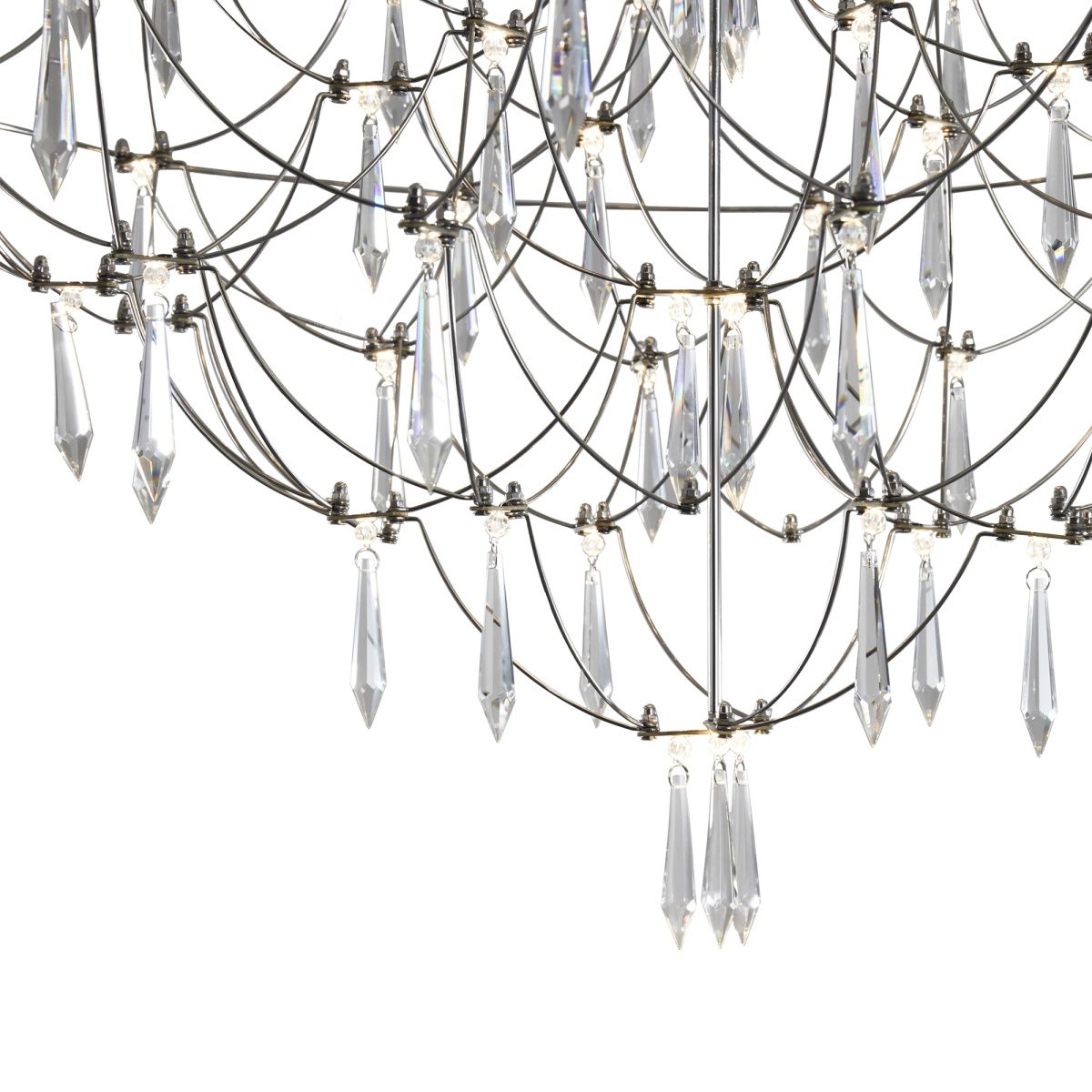 Арматура - хромированная нержавеющая сталь. В соединениях арматуры Led источник света и декоративные элементы из хрусталя в виде капелек. Цветовая температура 3000К.