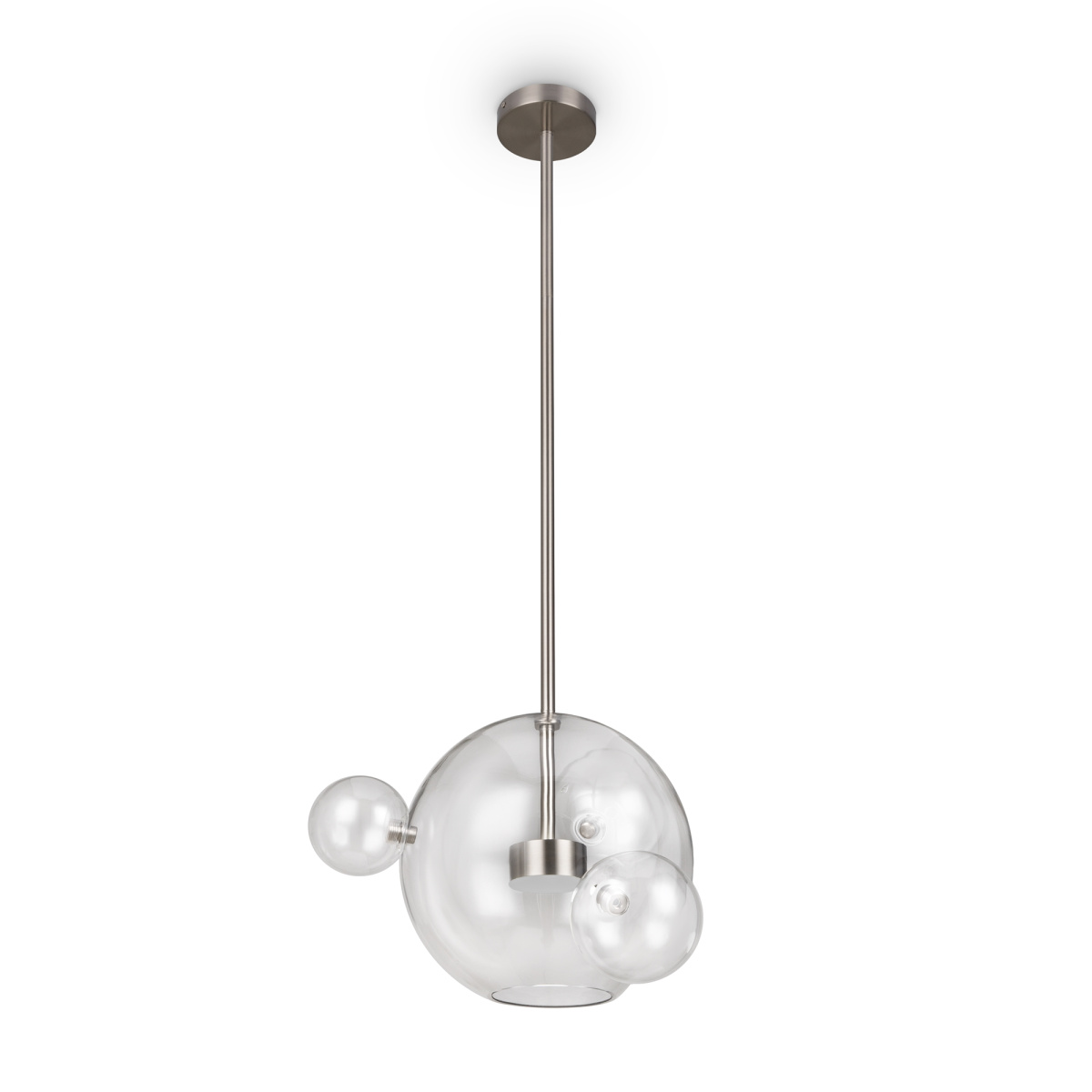 Материал арматуры – металл, цвет – латунь. Плафон – прозрачное глянцевое стекло. Трендовая сферическая форма. Энергоэффективные LED-источники обеспечивают равномерный яркий свет.