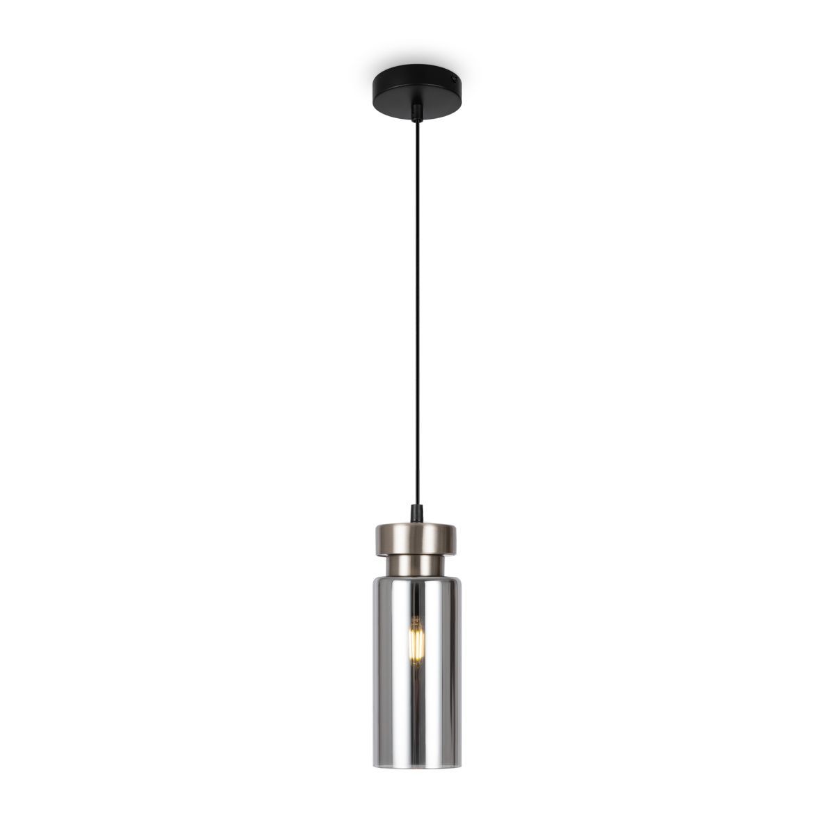 Металлическая арматура в двух оттенках: никель и черный с золотом. Плафон – глянцевое стекло. Цвет – серый. Оригинальная вытянутая цилиндрическая форма для акцентной подсветки. Источник света – лампа с цоколем E14.