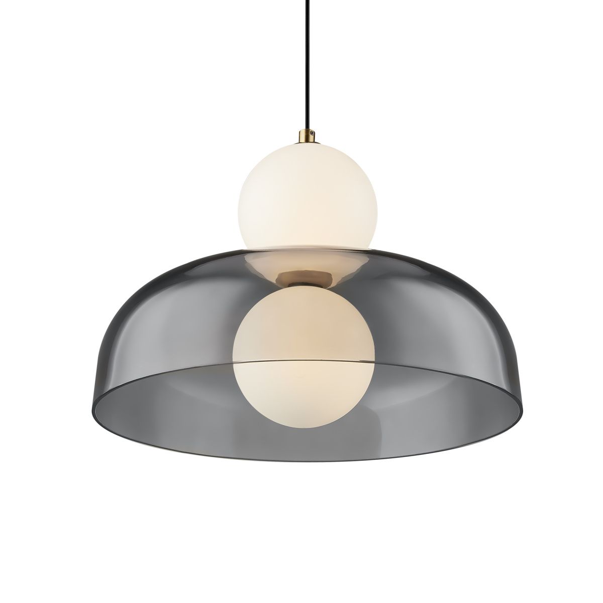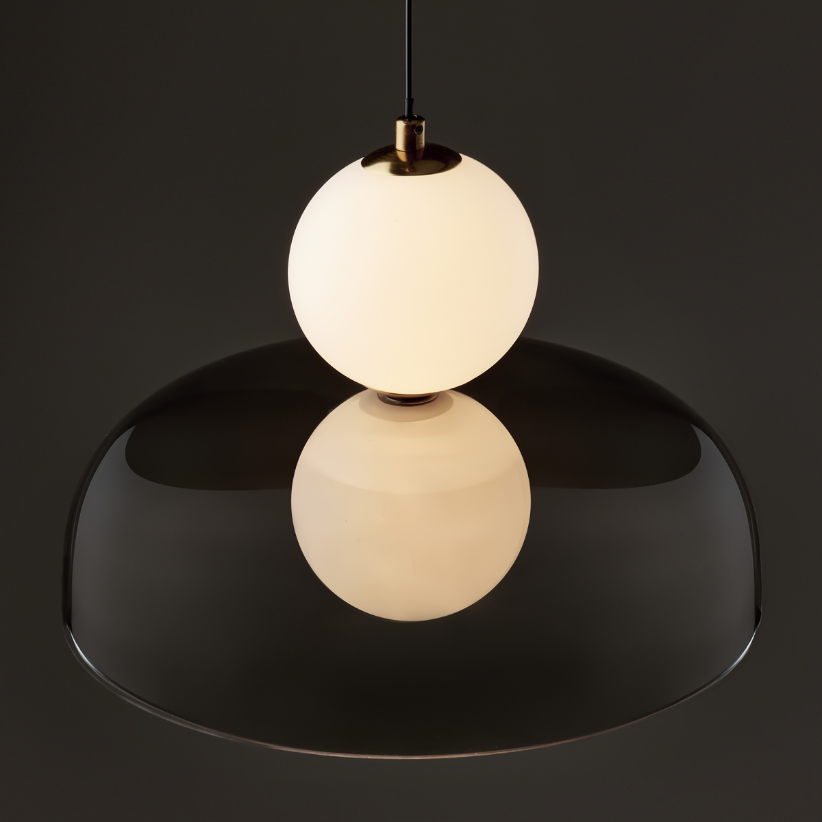 Арматура - металл, цвет - латунь. Стеклянные плафоны в виде сдвоенных матовых “шариков” дополнены широкими декоративными плафонами из стекла двух оттенков: дымчатый и янтарный. LED-источник света. Цветовая температура - 3000К. Светильники подойдут для светлых интерьеров и детских комнат.