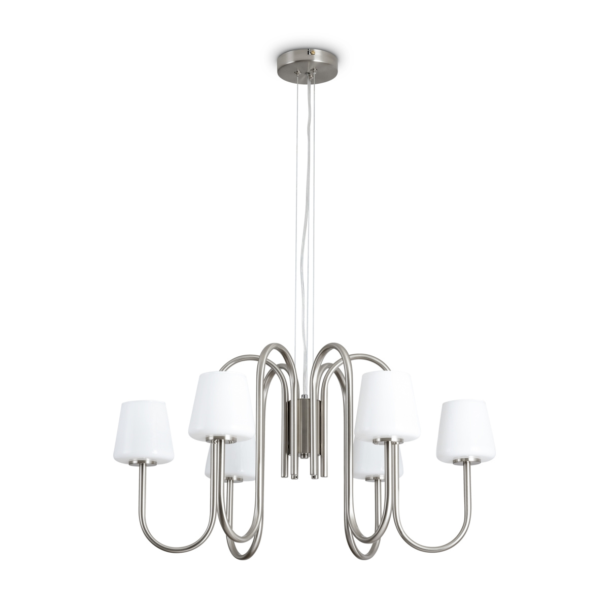 Металлическая арматура матового золота и никеля (новинка).Лампа E14 (не в комлекте). Белые глянцевые стеклянные плафоны мягко рассеивают свет. Минималистичная классика для любых интерьеров.