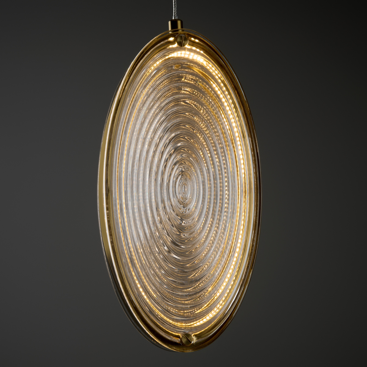 Арматура металл. Цвет латунь. Плафон из подкрашенного стекла.  Одинарные подвесы 3 х цветов и  в том числе популярный каскад сочетающий в себе три цвета подвесов. LED источник света. Цветовая температура 3000К.