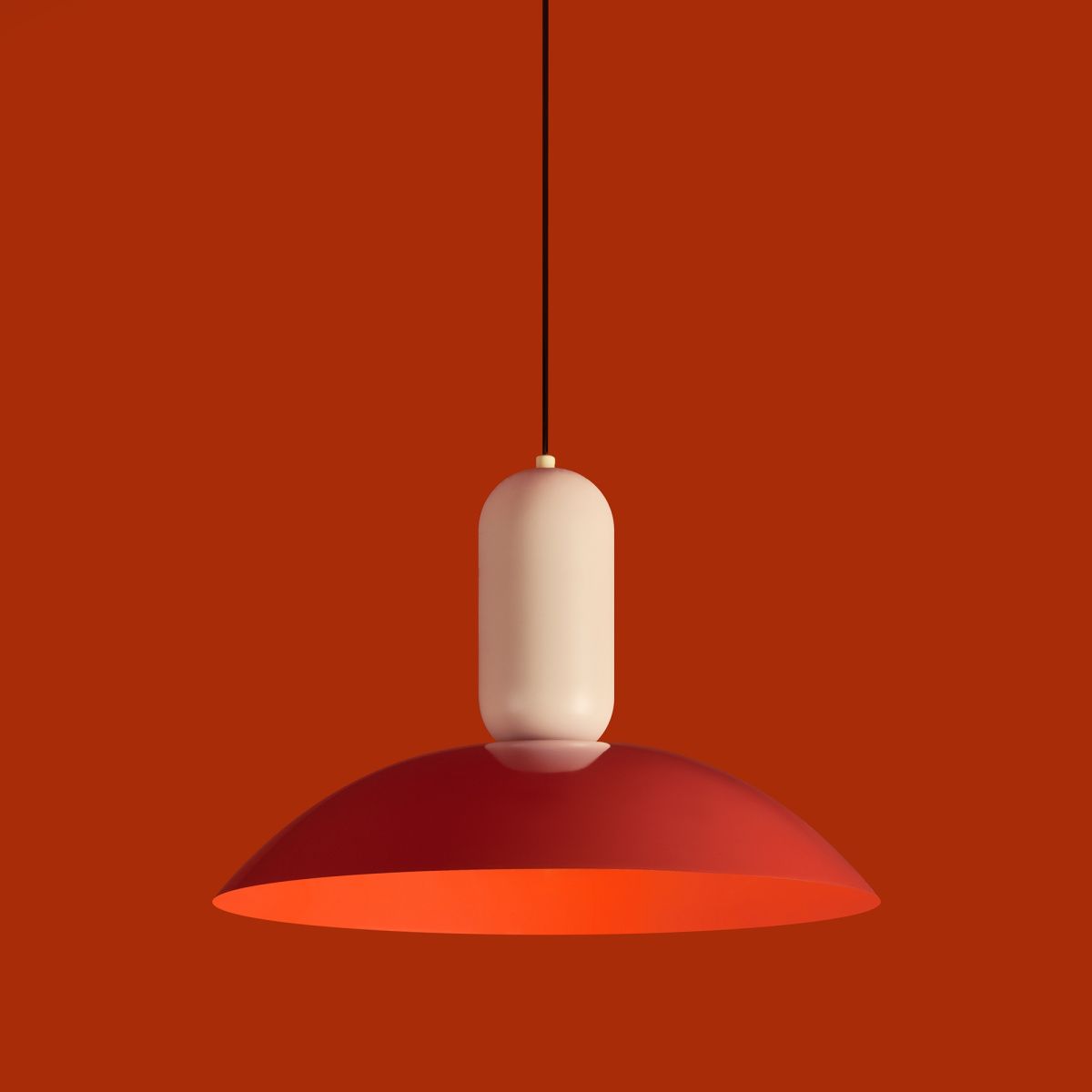 Арматура - чёрный металл.Каждый подвесной светильник окрашен в 2 цвета: серо-бежевый и жемчужно-белый, каменно-серый и белый, белый и каменно-серый. з новинки в сочетниях новых оттенков - чисто красный и мята бирюзовая.
