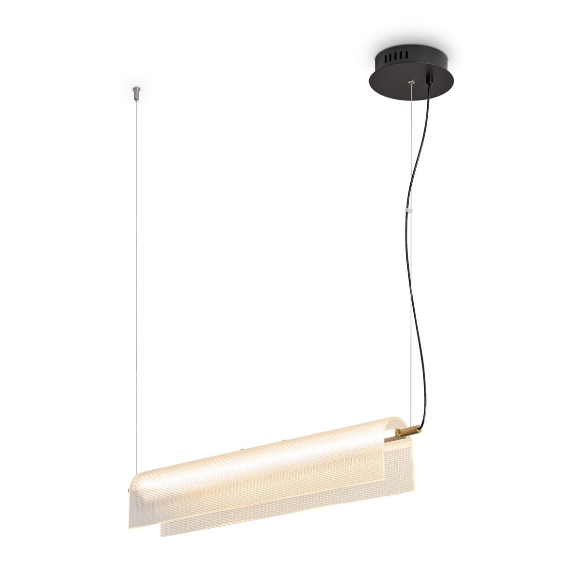 Материал арматуры — металл, цвет — черный с латунными элементами. Подвесной светильник оснащен LED-источником света с цветовой температурой 2700К. Подвесной светильник с прозрачным стеклянным рельефным плафоном в двух размерах. LED-трубка может быть использована отдельно от абажура . Подходит для современных интерьеров.