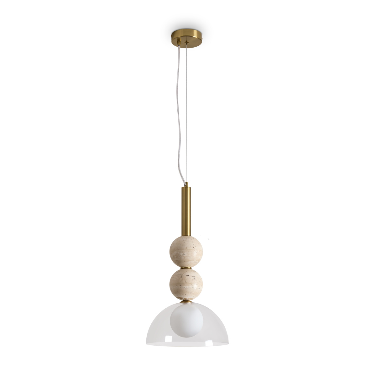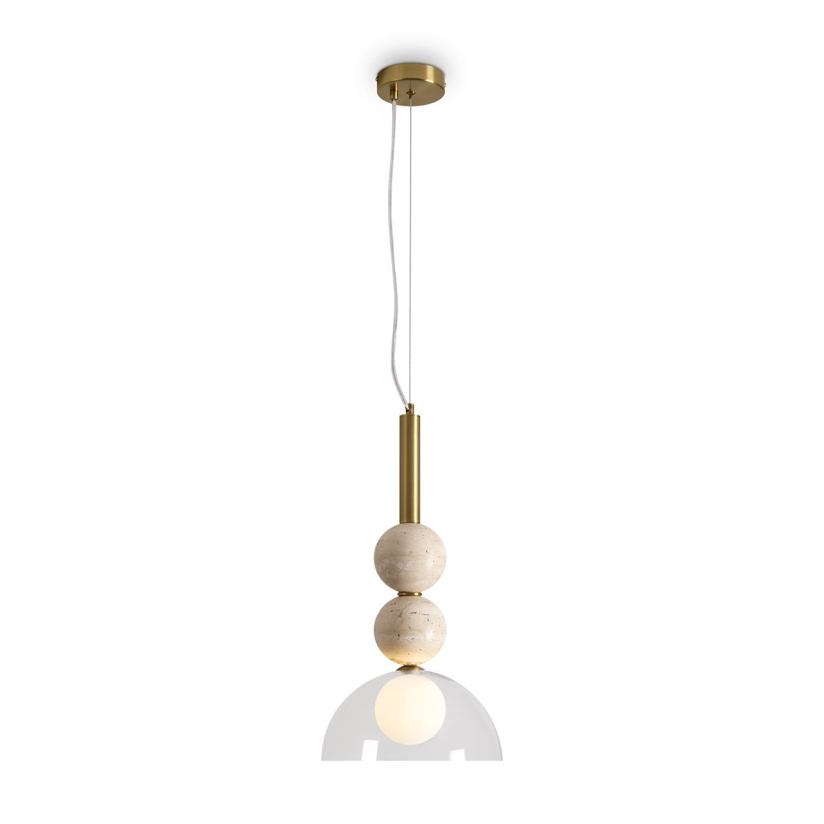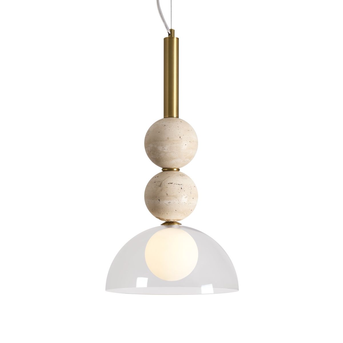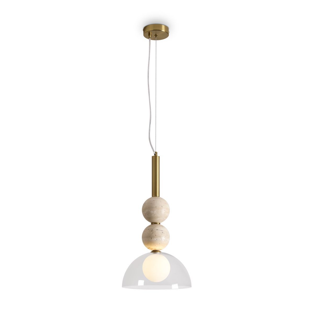Серия Sunspot использует камень травертин как основной декоративный элемент. Настенные бра в двух вариантах: с матовым белым стеклянным плафоном и со «скользящим» теплым светом. Отличительная черта бра: увеличенный размер плафона и сенсорное включение/выключение без диммирования. Подвесные светильники имеют прозрачные стеклянные плафоны с декоративными шариками из камня травертин. Sunspot включают три модели подвесов разных размеров и форм стеклянной окантовки на плафон. Арматура — металл латунного и черного цвета Источники света LED 3000K и цоколь G9. Настольная лампа с touch переключателем  . Серия создает комплексное зональное и  акцентное освещение, подходящее для создания уютной атмосферы.
