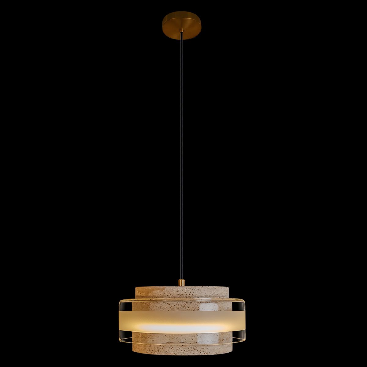 <p>По центру каменного корпуса — эффектный пояс из прозрачного стекла. Он образует аккуратное кольцо, будто опоясывая камень и визуально «облегчая» конструкцию. Внутри стеклянного кольца спрятан матовый участок, который смягчает свет, делает его рассеянным и комфортным для глаз. В итоге светильник не слепит, а мягко подсвечивает пространство, создавая спокойную, почти медитативную атмосферу.</p>