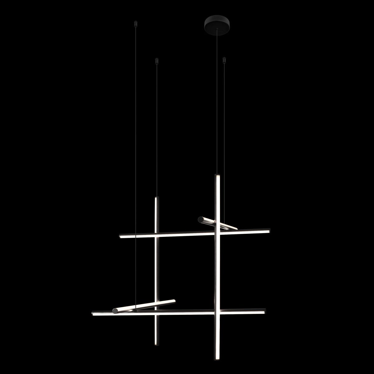 <p>Светильник крепится к потолку на едва заметных тонких тросах, поэтому создаётся впечатление, что конструкция свободно зависла в пространстве. Он не загромождает комнату, а, наоборот, визуально облегчает интерьер, добавляя ему глубины и объёма. </p>