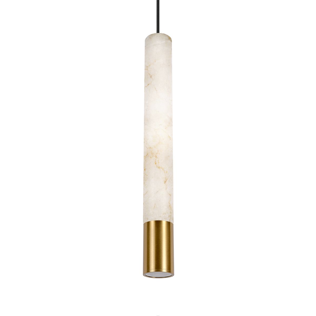 <p>Тонкий чёрный шнур подчёркивает вертикаль и визуально «подвешивает» светильник в воздухе, не перегружая пространство. Потолочная чашка в том же благородном металлическом оттенке объединяет композицию и делает светильник законченным интерьерным объектом.</p>